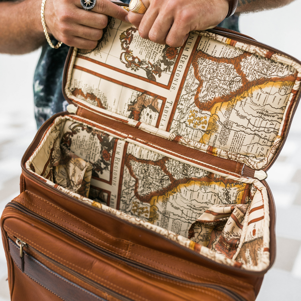 There is no secret that our Mapa Mundi™ lining is a signature feature of our leather goods. Designed with a classic Old World map theme, this lining is unique to us, durable and light weight. It features tear proof and water proof qualities that make it a one of a kind lining. Coffee spill in your backpack? Make up mess in your handbag? Our waterproof lining makes clean ups a breeze. We believe the outside and inside of your leather goods should both be conversation starters.
